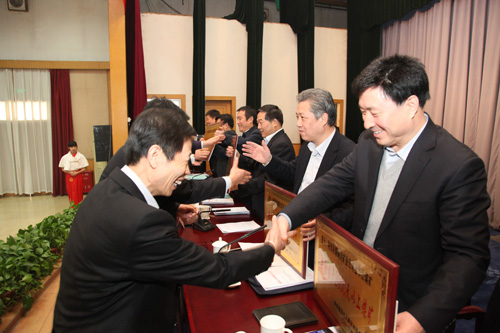 與會領(lǐng)導(dǎo)為受表彰的各類先進(jìn)代表頒獎