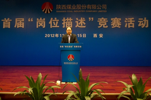 陜西煤業(yè)首屆“崗位描述”競賽活動現(xiàn)場,公司總經(jīng)理宋老虎帶頭進行“崗位描述”