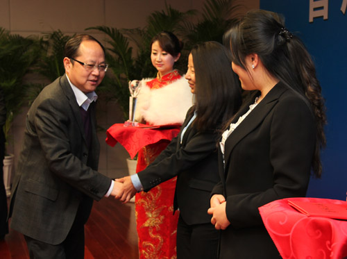 一等獎獲得者石敏、黨華蔚與頒獎領(lǐng)導(dǎo)合影