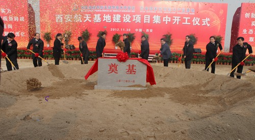 11月30日上午,西安國家民用航天產(chǎn)業(yè)基地舉行建設項目集中開工儀式,包括陜西煤業(yè)化工集團公司在西安航天基地建設的4個項目在內(nèi),涵蓋工業(yè)、總部研發(fā)和城市配套三大領域的11個重大項目開工奠基。陜煤化集團總經(jīng)理楊照乾,董事、陜煤股份公司總經(jīng)理宋老虎,副總經(jīng)理、陜鐵集團董事長劉強以及技術(shù)研究院董事長李向東、西安重裝集團董事長王增強出席開工儀式。