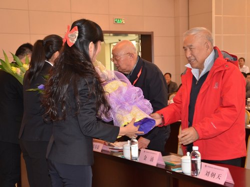 青年科技工作者代表向與會(huì)的三位院士、專家獻(xiàn)花
