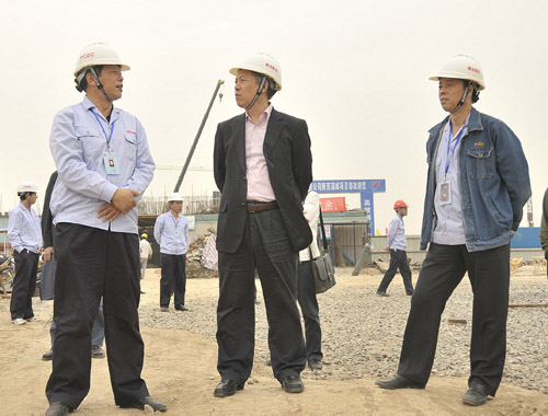 集團(tuán)公司董事長、黨委書記華煒(中)在項(xiàng)目建設(shè)現(xiàn)場(chǎng)了解情況