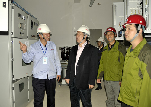 集團(tuán)公司董事長、黨委書記華煒在項(xiàng)目330總變電站了解情況