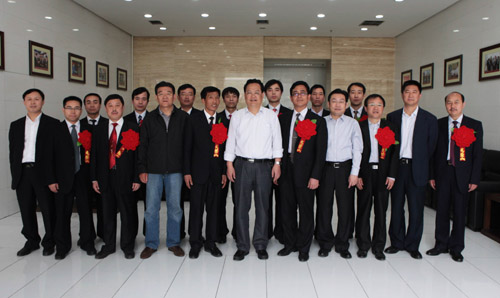 參加歡送儀式的集團公司領(lǐng)導與勞模合影留念