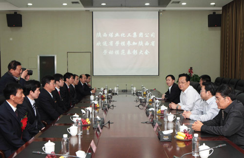4月27日上午,陜西煤業(yè)化工集團公司召開座談會,歡送集團公司12位省勞模和1個省先進集體代表參加陜西省勞動模范表彰大會。集團公司黨委副書記、工會主席馬富元,副總經(jīng)理尤西蒂、魏鐵軍,董事吳繼亮參加座談會并為勞模佩戴光榮花。集團公司工會副主席付曉陽主持會議。