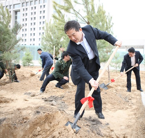 總經(jīng)理?xiàng)钫涨恍袇⒓印吧鷳B(tài)神南、綠色神南”職工植樹造林活動(dòng)