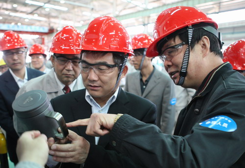 在聽取了神南礦業(yè)公司執(zhí)行董事、黨委書記王忠義對(duì)公司發(fā)展歷程,安全生產(chǎn)、經(jīng)營(yíng)管理、企業(yè)文化建設(shè)等方面的詳細(xì)介紹后,總經(jīng)理?xiàng)钫涨恍猩钊牍鞠聦賳挝簧衲袭a(chǎn)業(yè)發(fā)展公司進(jìn)行實(shí)地調(diào)研。調(diào)研現(xiàn)場(chǎng),每到一處,楊照乾都認(rèn)真了解各車間的設(shè)備配置、人員配置、工作流程、項(xiàng)目實(shí)施等情況。在三機(jī)車間,楊照乾與當(dāng)班工人親切握手,了解工人的生活、工作情況。聽到工人中不僅有集團(tuán)勞模、省級(jí)五一獎(jiǎng)?wù)芦@得者,還有全國(guó)技術(shù)比武狀元、全國(guó)勞模,楊照乾非常欣慰地說:“技術(shù)骨干是公司發(fā)展壯大的強(qiáng)力支撐,神南公司在這方面確實(shí)是下了大力氣,培養(yǎng)了一批人才,但還需要繼續(xù)努力,做好新老交接工作,繼續(xù)擴(kuò)大當(dāng)前開展的‘師帶徒’、‘崗位提升’等活動(dòng)的覆蓋面,創(chuàng)新形式,全員提升,爭(zhēng)取培養(yǎng)出更多的優(yōu)秀人才”。在采掘車間、支架車間,楊照乾現(xiàn)場(chǎng)查看了“指揮系統(tǒng)圖”“ 形跡化管理工具柜”等企業(yè)文化建設(shè)、日常管理方面的內(nèi)容。其中,水杯架上的“落其實(shí)者思其樹,飲其流者懷其源”職工警句引起了楊照乾的注意。聽完解釋后,他微笑著指出,企業(yè)文化建設(shè)是一個(gè)企業(yè)的靈魂所在,每一個(gè)百年企業(yè)都有自己獨(dú)特的企業(yè)文化。作為股份制企業(yè),神南公司在這方面做了積極的探索,也取得了一定的成績(jī),這不經(jīng)意的一句話也很能反映出一些東西。希望神南公司繼續(xù)保持當(dāng)前的發(fā)展勢(shì)頭,深入研究、積極嘗試,走出一條股份制企業(yè)文化建設(shè)的新路子。隨后,楊照乾、尤西蒂、朱周岐、魏鐵軍與神南礦業(yè)公司執(zhí)行董事、黨委書記王忠義、神南產(chǎn)業(yè)發(fā)展公司董事長(zhǎng)兼總經(jīng)理高暐、黨委書記馬有寬等同志在6米3大采高支架旁合影留念。恰逢“生態(tài)神南、綠色神南”職工植樹造林活動(dòng)即將啟動(dòng)之機(jī),楊照乾一行興致勃勃來(lái)到產(chǎn)業(yè)生態(tài)林,一起種植樹木綠化礦區(qū)。