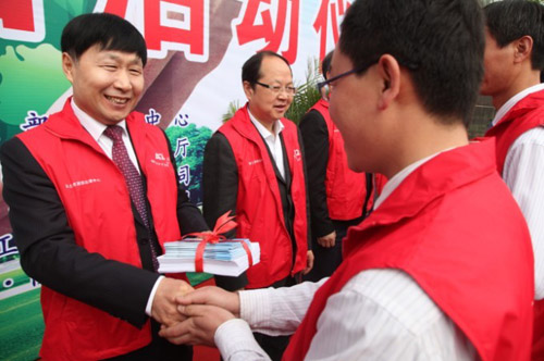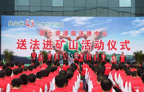 4月20日上午,國(guó)土資源部法律中心、陜西省國(guó)土資源廳紀(jì)念第43個(gè)世界地球日送法進(jìn)礦山主題普法活動(dòng)在陜西煤業(yè)化工集團(tuán)黃陵礦業(yè)公司隆重舉行。國(guó)土資源部法律中心黨委書(shū)記、主任孫英輝,陜西省國(guó)土資源廳執(zhí)法局副調(diào)研員黃安貴,陜煤化集團(tuán)董事、陜煤股份公司總經(jīng)理、黃陵礦業(yè)公司董事長(zhǎng)宋老虎,陜煤化集團(tuán)副總經(jīng)理魏鐵軍,集團(tuán)公司有關(guān)部門(mén)負(fù)責(zé)人,黃陵礦業(yè)公司總經(jīng)理范京道,副總經(jīng)理邢光軍及陜西黃河集團(tuán),陜西鋼鐵集團(tuán),中國(guó)地質(zhì)大學(xué)等單位的博士服務(wù)團(tuán)成員和相關(guān)領(lǐng)導(dǎo)及礦區(qū)近300名一線礦工參加了送法儀式。魏鐵軍主持儀式。
