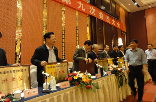 新當(dāng)選的中煤政研會(huì)副會(huì)長、集團(tuán)公司黨委副書記馬富元在會(huì)上為獲獎(jiǎng)單位頒獎(jiǎng)