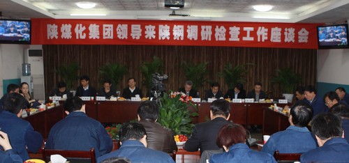 3月23日,陜西煤業(yè)化工集團(tuán)公司董事長(zhǎng)、黨委書記華煒與黨委副書記、工會(huì)主席馬富元、副總經(jīng)理尤西蒂以及集團(tuán)公司有關(guān)部門負(fù)責(zé)人等一行11人,到陜鋼集團(tuán)韓城基地調(diào)研指導(dǎo)工作,并召開(kāi)了座談會(huì)。