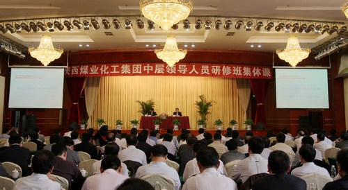 4月11日下午,陜西煤業(yè)化工集團公司第三期中層管理人員研修班全體學員集中在天域凱萊五樓會議室,聆聽了集團公司董事長、黨委書記華煒以《解讀企業(yè)跨越發(fā)展,強化科學決策意識》為題的精彩講課。集團公司人力資源部經(jīng)理李聰主持此次集體課,集團公司機關提名委、人力資源部、企業(yè)文化部等部門負責人也參加了學習。