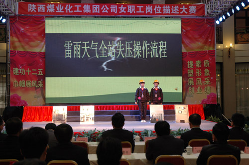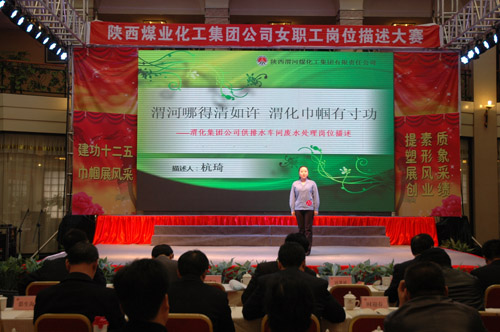 “三八”國際婦女節(jié)來臨之際,陜西煤業(yè)化工集團(tuán)公司工會(huì)女職工委員會(huì)積極響應(yīng)集團(tuán)公司2012年工作會(huì)上提出的強(qiáng)化人力資源管理,提高職工隊(duì)伍素質(zhì)的號召,于3月6日上午在渭化集團(tuán)舉辦了“建功十二五?巾幗展風(fēng)采”女職工崗位描述大賽,來自22個(gè)單位21個(gè)工種崗位的28名女職工用崗位描述這個(gè)特殊形式表達(dá)她們?nèi)绾伟l(fā)揮巾幗生力軍作用、建功一流企業(yè)集團(tuán)的決心和信心。陜煤化集團(tuán)公司黨委副書記、工會(huì)主席馬富元,集團(tuán)公司董事、渭化公司董事長、黨委書記錢嘉賓,集團(tuán)公司機(jī)關(guān)黨委書記、黨群工作部部長夏迎廣,渭化公司總經(jīng)理郭建功,集團(tuán)公司工會(huì)副主席付曉陽,集團(tuán)人力資源部經(jīng)理李聰及渭化公司黨委副書記、紀(jì)委書記、工會(huì)主席劉智出席了本次活動(dòng)。