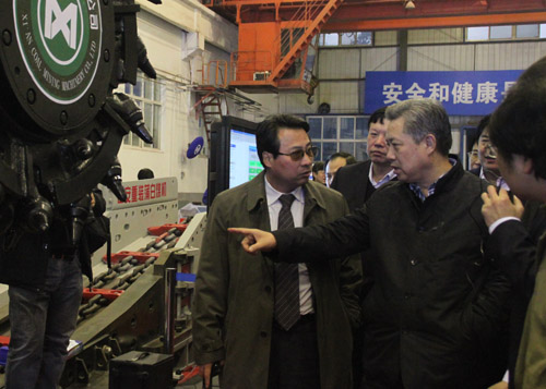 集團(tuán)公司董事長(zhǎng)、黨委書(shū)記華煒和與會(huì)人員一起參觀西安重裝集團(tuán)在科技創(chuàng)新方面的新產(chǎn)品、新成果