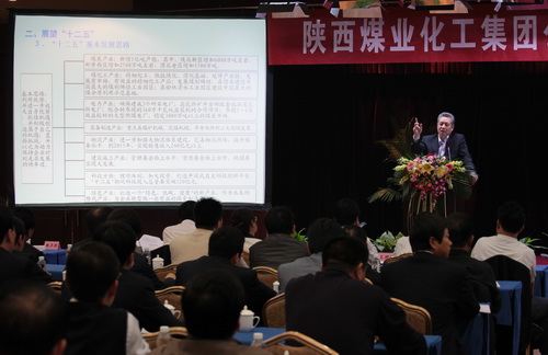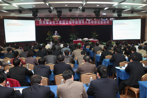 董事長華煒在此次中層管理人員研修班集體課上講課的題目是《解讀企業(yè)跨越發(fā)展,強化科學決策意識》,主要從三個部分進行了分析講解。第一是回顧“十一五”。通過列舉數(shù)據(jù),說明了“十一五”期間是集團公司發(fā)展最快的五年,是職工得實惠最多的五年,也是集團發(fā)生了根本性變化的五年。他說,對集團公司長遠發(fā)展起作用的主要有三大亮點,一是經(jīng)濟實力和抗風險能力大大增強;二是傳統(tǒng)國企的三個(物流銷售、科技研發(fā)、融資方面)“軟肋”變成了集團公司的三大優(yōu)勢;三是職工真真正正享受到了改革開放、企業(yè)發(fā)展帶來的成果。他講到,對“十一五”重大問題的認識主要是總體發(fā)展戰(zhàn)略、管理體制和產(chǎn)業(yè)結(jié)構(gòu)調(diào)整的認識。第二是展望“十二五”。他首先通報了集團公司今年1—9月份的生產(chǎn)經(jīng)營情況:煤炭產(chǎn)量8100萬噸,同比增長9.1%;銷售收入518億元,同比增長79.8%;利潤88.2億元,同比增長153.5%;重大項目建設(shè)投資155.8億元,同比增長14.6%;職工收入同比增長13.9%。預計全年,各項主要經(jīng)濟指標均能超額完成。對“十二五”期間如何發(fā)展,首先分析了集團公司在煤炭、煤化工等領(lǐng)域面臨的形勢;其次對集團公司“十二五”規(guī)劃目標進行了說明,既:原煤產(chǎn)量達到2億噸,銷售收入突破2000億元,實現(xiàn)利稅500億元,職工人均年收入達到10萬元。實現(xiàn)這4個目標,要靠2000億元的投資做保證。第三講了集團公司在煤炭、煤化工、電力、科技、建筑等幾個板塊的基本發(fā)展思路。同時講到,“十二五”期間,集團公司要圍繞“綠色、低碳、健康”的發(fā)展思路打造一個面向未來的新型產(chǎn)業(yè),作為未來資源性企業(yè)的替代產(chǎn)業(yè),為企業(yè)未來轉(zhuǎn)型做一些有益的探索和準備。第三是科學決策。通過集團公司如何走進陜北蘭碳產(chǎn)業(yè)、走進陜南、走進開米選擇項目的幾個小故事,告訴大家做為企業(yè)的領(lǐng)導,只要通過科學分析,加上擁有責任意識、戰(zhàn)略意識、大局意識、政治意識、風險意識和擔當意識,就能得到一個科學的決策,工作也就成功了一半。最后,他講到管理人員要善于學習,做到真學,用心學,堅持學。要善于思考,做到在思考中理解知識,在思考中借鑒經(jīng)驗,在思考中總結(jié)過去。要善于總結(jié),做到日、月、年“回頭望”,在過去的基礎(chǔ)上再思考、再認識。因為,一個優(yōu)秀的領(lǐng)導干部應該是善于總結(jié)的大師。