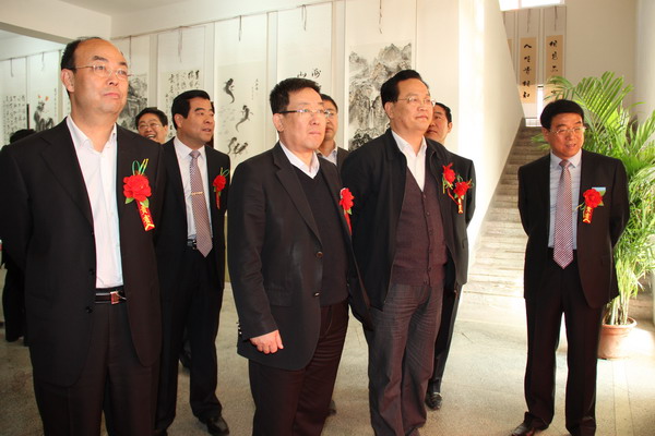 與會(huì)領(lǐng)導(dǎo)及來賓觀看王石凹礦職工美術(shù)書法攝影作品展