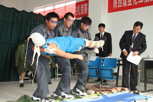 9月19日至22日,陜西煤業(yè)化工集團(tuán)公司第三屆礦山救援技術(shù)競(jìng)賽在銅川礦業(yè)公司隆重舉行,集團(tuán)公司所屬企業(yè)七支代表隊(duì)的救護(hù)指戰(zhàn)員參加了理論考試、綜合體能、模擬救災(zāi)、醫(yī)療急救、呼吸器操作、團(tuán)體和個(gè)人全能七個(gè)項(xiàng)目的激烈角逐。陜西煤礦安全監(jiān)察局總工程師高興宏,陜西省煤炭生產(chǎn)安全監(jiān)督局總工程師蔡選良,陜煤化集團(tuán)副總經(jīng)理閔龍、朱周岐,銅川礦業(yè)公司總經(jīng)理宋志剛、黨委書記黃河、副總經(jīng)理劉水利等相關(guān)領(lǐng)導(dǎo)參觀了各救護(hù)大隊(duì)圖片展、檢閱了參賽救護(hù)隊(duì)員并出席了競(jìng)賽開幕式。各參賽單位參賽隊(duì)員、領(lǐng)隊(duì)、教練員、裁判員以及前來觀摩競(jìng)賽的省屬咸陽市、延安市、榆林市、寶雞市、商洛市等礦山救護(hù)中隊(duì)隊(duì)員等200余人參加了競(jìng)賽活動(dòng)。