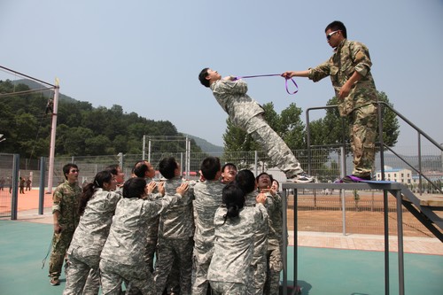15日下午,“蛟龍隊”、“霹靂隊”、“雄鷹隊”、“金鷹隊”——這四支參訓(xùn)員工編成的隊伍在訓(xùn)練營開營儀式上驕傲誕生。雖然當(dāng)天天氣是電閃雷鳴、風(fēng)中飄雨,但四支隊伍不為所動,堅持完成了當(dāng)天下午的訓(xùn)練科目。隨后,16日,參訓(xùn)員工在教練的指導(dǎo)下,各隊順利完成“高空八字橋”、“攀巖”、“ 合力過橋”、“信任背摔”、“禮讓通行”等訓(xùn)練科目。在最后的“畢業(yè)墻”項目中,所有參訓(xùn)員工齊心協(xié)力,相互協(xié)作,僅僅用了18分鐘就全部成功翻越4米高墻,被評為“卓越”團隊,受到了培訓(xùn)教練的贊揚,充分體現(xiàn)出機關(guān)員工良好的整體素質(zhì)和團隊協(xié)作精神,也檢驗了此次訓(xùn)練的成果。