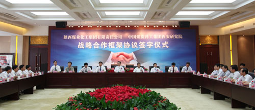 6月29日下午,陜西煤業(yè)化工集團(tuán)公司與中國煤炭科工集團(tuán)西安研究院在陜西賓館簽署戰(zhàn)略合作框架協(xié)議及防治水安全技術(shù)會診合作協(xié)議。陜西煤業(yè)化工集團(tuán)公司董事長、黨委書記華煒,總經(jīng)理?xiàng)钫涨?,副總?jīng)理尚建選、閔龍;中國煤炭科工集團(tuán)西安研究院院長董書寧,黨委書記、副院長王澤進(jìn),副院長虎維岳;陜西煤炭工業(yè)協(xié)會副會長、陜西煤炭學(xué)會理事長高新民;陜西省安全生產(chǎn)監(jiān)督管理局、陜西省煤炭生產(chǎn)安全監(jiān)督管理局副處長李中元出席簽約儀式。陜西煤業(yè)化工集團(tuán)公司和中國煤炭科工集團(tuán)西安研究院兩家企業(yè)的有關(guān)部門、單位的負(fù)責(zé)人等70余人參加了簽約儀式。