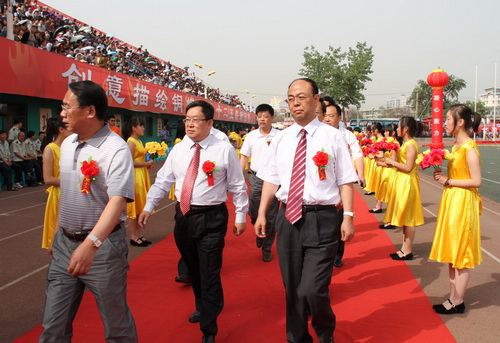 銅川礦業(yè)公司黨委書記黃河致開幕詞,他首先代表銅川礦業(yè)公司黨政工團(tuán)各級組織,向運(yùn)動會的勝利召開表示熱烈的祝賀!向蒞臨運(yùn)動會開幕式的各位領(lǐng)導(dǎo)、各位來賓表示熱烈的歡迎!向全體運(yùn)動員、教練員、裁判員和廣大干部職工致以親切的慰問!黃河指出,近年來,在陜西煤業(yè)化工集團(tuán)公司的正確領(lǐng)導(dǎo)下,在社會各界和有關(guān)方面的關(guān)心支持下,銅川礦業(yè)公司各級組織和廣大干部職工堅(jiān)持以科學(xué)發(fā)展觀為統(tǒng)領(lǐng),緊緊圍繞改革、發(fā)展和穩(wěn)定中心工作,集中精力狠抓安全生產(chǎn),全力以赴維護(hù)礦區(qū)穩(wěn)定,深入開展創(chuàng)先爭優(yōu)活動,努力創(chuàng)建“三型六化”學(xué)習(xí)型企業(yè),積極實(shí)施文化強(qiáng)企戰(zhàn)略,民生工程建設(shè)成效顯著,礦區(qū)文明建設(shè)協(xié)調(diào)發(fā)展,各項(xiàng)工作穩(wěn)步推進(jìn),樹立了良好企業(yè)形象。他說,舉辦本屆職工運(yùn)動會,是銅川礦區(qū)職工群眾文化體育生活中的一件大事、喜事,不僅是對公司“十一五”發(fā)展成果的一次大展示,也是對全公司廣大干部職工精神風(fēng)貌的一次大檢閱,更是銅煤人闊步邁上“十二五”新征程的一次大動員。同時,這次運(yùn)動會又是公司文化強(qiáng)企的一項(xiàng)盛會,更是對中國共產(chǎn)黨建黨九十周年的一份厚禮。希望全體運(yùn)動員、裁判員和工作人員,圍繞“和諧盛世、輝煌銅煤”的主題,弘揚(yáng)積極向上、勇于超越的體育精神,堅(jiān)持重在參與、重在學(xué)習(xí)、重在提高,頑強(qiáng)拼搏,公平競爭,賽出風(fēng)格,賽出水平。公司各級組織要以這次運(yùn)動會為契機(jī),廣泛發(fā)動職工群眾開展好豐富多彩的全民健身活動,進(jìn)一步增強(qiáng)企業(yè)凝聚力、向心力和戰(zhàn)斗力,激發(fā)廣大干部職工為實(shí)現(xiàn)安全與穩(wěn)定“雙零”目標(biāo),創(chuàng)建“三型六化”學(xué)習(xí)型企業(yè),建設(shè)安全、穩(wěn)定、充滿活力的和諧礦區(qū)做出新的更大貢獻(xiàn)。