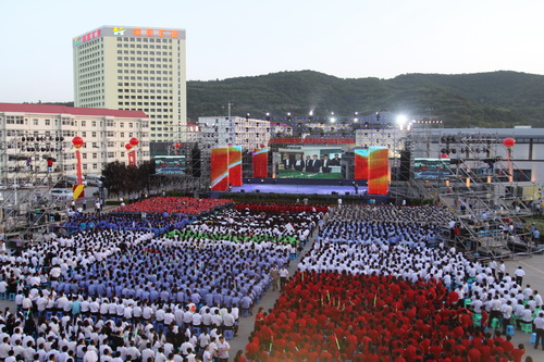 蒞臨演出現(xiàn)場的有原陜西省副省長、陜西省人大常委會副主任鞏德順,解放軍總政歌舞團(tuán)政委張方軍,副團(tuán)長李富祥,鹽城市市委副書記李馳,鹽城市政協(xié)副主席、江蘇悅達(dá)集團(tuán)黨委書記、董事局主席陳云華,副主席、總裁邵勇,陜西煤業(yè)化工集團(tuán)黨委書記、董事長華煒,總經(jīng)理楊照乾及市、縣相關(guān)領(lǐng)導(dǎo)和黃陵礦區(qū)干部職工及當(dāng)?shù)厝罕姶斫那艘煌^看了演出。江蘇悅達(dá)集團(tuán)董事局副主席、總裁邵勇先生和陜西煤業(yè)化工集團(tuán)黨委副書記、總經(jīng)理楊照乾分別為晚會致辭,面對未來的合作與發(fā)展,雙方都充滿了熱切的希望與衷心的祝福,并表示在長期良好合作的基礎(chǔ)上,不斷加強(qiáng)合作誠意,實現(xiàn)資源互補(bǔ),以黃礦精神悅達(dá)速度齊心鑄造更加輝煌的業(yè)績。