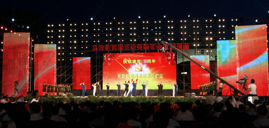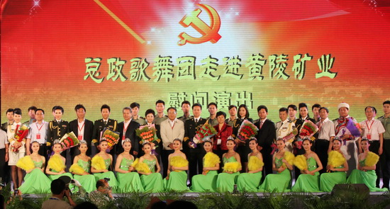 在建黨90周年到來之際,6月7日,在國內(nèi)外享有很高聲譽(yù)且具有獨(dú)特藝術(shù)風(fēng)格的解放軍總政歌舞團(tuán)受江蘇悅達(dá)集團(tuán)邀請,帶著對延安老區(qū)人民和陜西煤化職工的深情厚誼,走進(jìn)全國煤炭百強(qiáng)企業(yè)陜西煤業(yè)化工集團(tuán)黃陵礦業(yè)公司慰問演出。來自總政歌舞團(tuán)諸多深受廣大觀眾喜愛的軍旅明星,如閻維文、蔡國慶、王宏偉、譚晶、白雪等著名演員紛紛登臺獻(xiàn)藝,經(jīng)典的紅歌、熟悉的明星,三個小時的慰問演出讓煤炭職工近距離欣賞到一場高水準(zhǔn)的歌舞晚會。