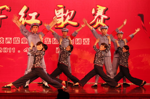 表彰會后,伴隨著一個視頻短片《大話紅歌賽》的播放,集團公司紀(jì)念五四運動“運銷杯”青年紅歌賽在輕松幽默的氛圍中拉開序幕,一個個精心打造的節(jié)目閃亮登場,一時間高潮疊起、異彩紛呈。由黃陵礦業(yè)公司選送的大合唱《陽光礦業(yè)》,以恢弘的氣勢,完美的聲線配合,唱出了當(dāng)代礦業(yè)人的豪邁與氣魄,贏得了滿堂彩;蒲白礦業(yè)公司選送的歌曲《國家》,伴以小朋友的手語舞蹈,以干凈純真的方式詮釋了“都說國很大,其實一個家”的永恒主題,深深感染了現(xiàn)場觀眾。運銷集團選送的紅歌聯(lián)唱《解放區(qū)的天》,聲樂配合得當(dāng),整體和諧有序,給人以振奮和美感;銅川礦業(yè)公司選送的《再唱山歌給黨聽》,創(chuàng)新填詞,更好地詮釋了當(dāng)代青年對于黨的無限熱愛。彬長礦業(yè)公司選送的擬聲音樂小品《沒有共產(chǎn)黨就沒有新中國》,創(chuàng)造性的融入了華陰老腔等音樂元素,編排新穎,特色獨具;澄合礦業(yè)公司選送的《十送紅軍》,以情景劇的方式,唯美地展示了軍民間的魚水深情,令人動容;北元化工公司選送的《東方紅》,將人們再次帶回到激情燃燒的歲月,重溫了那一曲激勵了一代又一代的青春誓言……活動中還特別穿插了現(xiàn)場助興文藝節(jié)目,由神南礦業(yè)公司選送的魔術(shù)《手動奇跡》,現(xiàn)場上演了見證奇跡的時刻,澄合礦業(yè)公司選送的小品《大話梁?!?,用極度夸張的表演,針砭時弊,頌揚了愛情之永恒。
