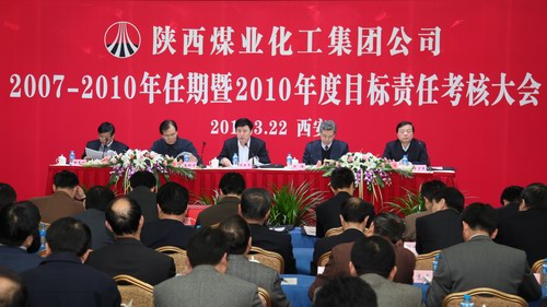 3月22日,省委組織部、省國(guó)資委共同組成考核組,對(duì)陜西煤業(yè)化工集團(tuán)公司2007-2010年任期暨2010年度目標(biāo)責(zé)任進(jìn)行考核??己私M成員、集團(tuán)公司領(lǐng)導(dǎo)、集團(tuán)公司所屬單位的主要領(lǐng)導(dǎo)和機(jī)關(guān)部門的負(fù)責(zé)同志以及職工代表140余人參加了會(huì)議。