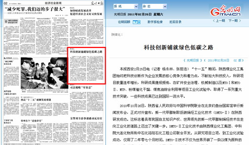 2010年10月26日,陜西省人民政府與中國科學(xué)院聯(lián)合在北京釣魚臺(tái)國賓館舉行新聞發(fā)布會(huì),正式對(duì)外宣布:新一代甲醇制取低碳烯烴工業(yè)化技術(shù)(DMTO-Ⅱ)在陜西研發(fā)成功。這標(biāo)志著具有我國自主知識(shí)產(chǎn)權(quán)、世界領(lǐng)先的新一代甲醇制烯烴技術(shù)在走向工業(yè)化的道路上邁出了關(guān)鍵一步。DMTO-Ⅱ工業(yè)化技術(shù)由陜西煤業(yè)化工集團(tuán)、中科院大連化物所和中石化洛陽石化工程公司聯(lián)合開發(fā)。從研究項(xiàng)目立項(xiàng),到工業(yè)化試驗(yàn)成功,僅用了二年零七個(gè)月時(shí)間。DMTO-Ⅱ技術(shù)不僅為世界開辟了一條以煤為原料的廉價(jià)制取烯烴技術(shù)路線,也為我國發(fā)展煤制烯烴產(chǎn)業(yè)奠定了堅(jiān)實(shí)的技術(shù)條件,對(duì)緩解我國石油資源緊缺局面、維護(hù)國家能源戰(zhàn)略安全、促進(jìn)新型煤化工產(chǎn)業(yè)健康發(fā)展具有重大意義。會(huì)上還簽署了世界首套67萬噸/年DMTO-II烯烴項(xiàng)目技術(shù)許可協(xié)議。按照計(jì)劃,陜煤化集團(tuán)將在陜西蒲城建設(shè)中國最大的煤制烯烴工業(yè)園區(qū),并計(jì)劃斥資67.8億元,配套鋪設(shè)國內(nèi)首條、也是世界最長的輸煤管道,解決其原料運(yùn)輸問題,在DMTO-II技術(shù)的推廣上邁出了堅(jiān)實(shí)的第一步。