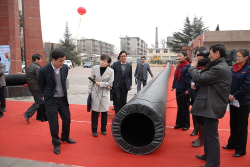 與會(huì)人員觀摩了韓城礦務(wù)局支護(hù)用品廠生產(chǎn)目前國(guó)內(nèi)最先進(jìn)的無(wú)縫正壓風(fēng)筒。