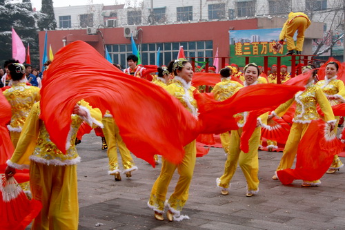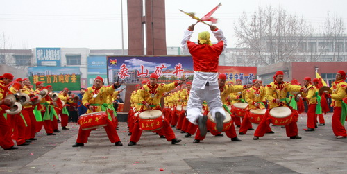 鑼鼓交響齊奏春之旋律,龍騰獅躍共抒發(fā)展豪情。2月10日,韓城礦業(yè)公司(韓城礦務局)機關大院彩綢飄飄,人頭攢動,鑼鼓喧天,鞭炮齊鳴。公司(局)所屬的桑樹坪礦、下峪口礦、生活服務中心、象山礦井組織的2011年新春大型社火表演在這里隆重舉行。他們把公司機關辦公樓附近家屬區(qū)和村莊新春氣氛渲染得紅紅火火,熱熱鬧鬧。