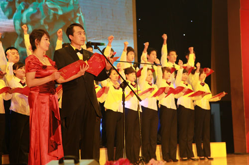 為此次慶祝晚會(huì),公司精心挑選了精彩的節(jié)目,歌伴舞《今天是你的生日》、《陜焦之歌》、小品《防火于未燃》等節(jié)目,演員們意氣風(fēng)發(fā)技藝精湛的表演引來(lái)觀(guān)眾經(jīng)久不息的掌聲,在知名主持人那混厚優(yōu)美的主持詞里我們仿佛穿透了40年的漫長(zhǎng)時(shí)空,眼望著鮮紅的陜焦公司四十周年的字符,一個(gè)全新的陜焦伊然在現(xiàn)場(chǎng)的觀(guān)眾心中升起?!澳壑拍睿壑硐?,凝聚著青春年華,陜焦夢(mèng)想,奔騰著熱血,奔騰著海洋,奔騰著波瀾洶涌浩瀚的胸膛”,一首由公司基層員工及中層領(lǐng)導(dǎo)干部40余人排練的配樂(lè)詩(shī)朗誦“陜焦夢(mèng)想”,凝聚了陜焦老中青三代人的心聲,深情的回顧了陜焦四十年的風(fēng)雨歷程,謳歌了歷屆為公司做出杰出貢獻(xiàn)的建設(shè)者,歌頌陜焦發(fā)展的不同時(shí)期,凝練著陜焦人對(duì)企業(yè)深厚的情感,表演者飽滿(mǎn)的激情和真情的流露打動(dòng)了在場(chǎng)的每一位觀(guān)眾,動(dòng)情之處,許多老干部們,悄悄地拭去了激動(dòng)的淚花,現(xiàn)場(chǎng)不時(shí)爆發(fā)出雷鳴般的掌聲,將晚會(huì)掀向高潮。