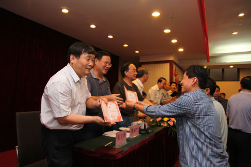與會領(lǐng)導(dǎo)為獲獎(jiǎng)人員頒發(fā)獲獎(jiǎng)證書