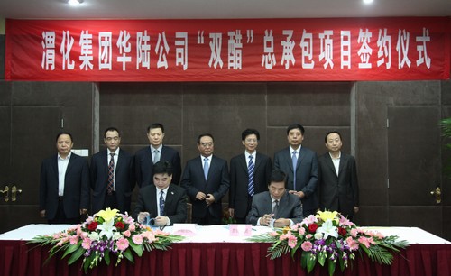 9月27日上午,渭河煤化工集團(tuán)公司、華陸工程科技公司“雙醋”總承包項(xiàng)目簽約儀式在西安舉行。陜西煤業(yè)化工集團(tuán)公司副總經(jīng)理尚建選、渭河煤化工集團(tuán)公司總經(jīng)理郭建功、華陸工程科技公司董事長(zhǎng)曹一平等有關(guān)領(lǐng)導(dǎo)出席了儀式。渭河煤化工集團(tuán)副總經(jīng)理王會(huì)民、華陸工程科技有限責(zé)任公司總經(jīng)理吳銀龍?jiān)趨f(xié)議上簽字。