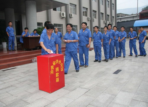 繼今年4月份向玉樹捐款后,西安重工裝備制造集團有限公司再掀捐款高潮。重裝集團在接到陜煤化集團的文件后,立即行動起來,積極動員干部職工向我省特大暴雨洪澇災(zāi)害受災(zāi)群眾開展捐贈活動。8月23日下午,僅僅用了15分鐘,重裝集團機關(guān)全體干部職工在黨委書記王增強的帶領(lǐng)下,共捐款9100元,人均捐款超過200元。截止8月26日,重裝集團參加捐款的人數(shù)共計2773人,共捐款104552.1元。