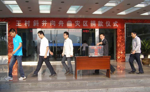 8月27日上午,王村斜井為災(zāi)區(qū)同胞舉辦大型募捐活動,500多名干部職工參加了捐款儀式。20元、50元、100元、200元……捐款活動中所有干部職工紛紛慷慨解囊,將一份份愛心款投入到捐款箱內(nèi),充分發(fā)揚了“一方有難、八方支援”的優(yōu)良傳統(tǒng)?;顒佣潭?個小時就募集愛心款11025 元。