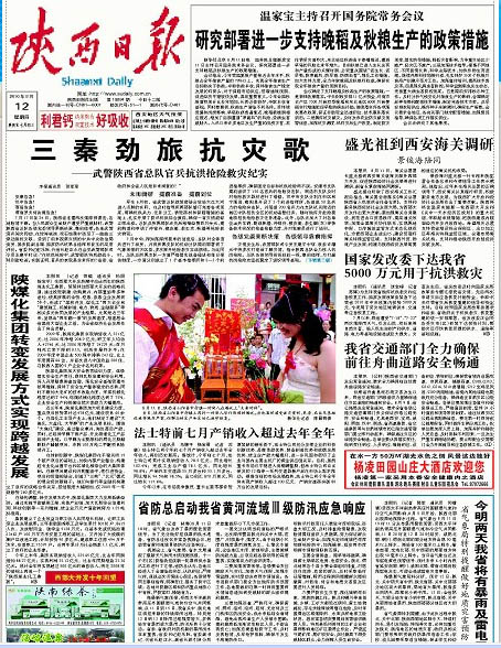 刊登在《陜西日報(bào)》2010年8月12日一版