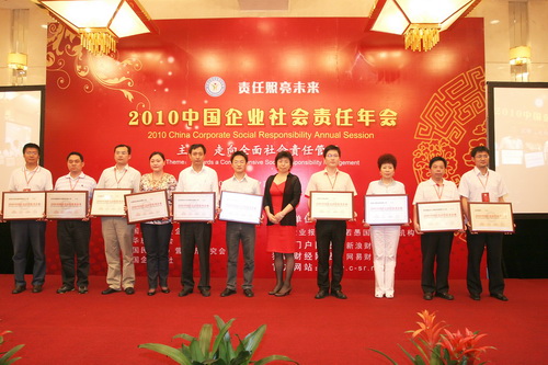 據(jù)悉,“2010中國企業(yè)社會責(zé)任年會”由中國外商投資企業(yè)協(xié)會、中華慈善總會、中國民(私)營經(jīng)濟(jì)研究會、中國企業(yè)報社聯(lián)合主辦,匯集了各大跨國公司、國企、民企及政府領(lǐng)導(dǎo)、各界專家學(xué)者。會上,向社會隆重推出和發(fā)布《2010中國企業(yè)社會責(zé)任發(fā)展報告》和《2010中國企業(yè)社會責(zé)任榜》。來自國家有關(guān)部委、跨國公司、國內(nèi)企業(yè)和媒體的共300余位代表參加了年會,并在論壇上就企業(yè)社會責(zé)任有關(guān)議題進(jìn)行了交流和探討。