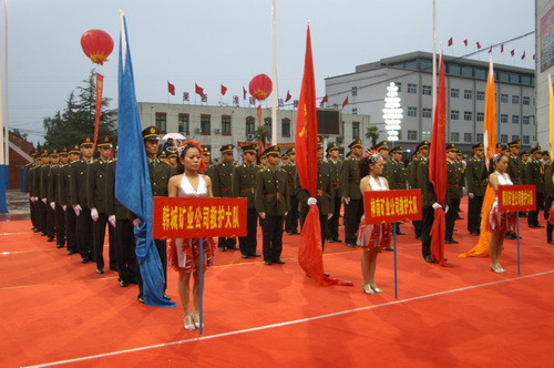 籃球傳友誼,安全促發(fā)展。6月3日晚,韓城礦業(yè)公司象山礦井職工運動廣場燈火通明,禮花四射。陜西煤業(yè)化工集團公司第一屆礦山救護隊籃球比賽開幕式在這里隆重舉行。集團公司副總經(jīng)理閔龍、集團公司工會副主席李向東、集團公司安全監(jiān)督管理部經(jīng)理李文革、7支參賽隊有關領導和各代表隊隊員及韓城礦業(yè)公司職工家屬500多人出席了當晚的開幕式。