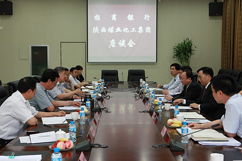 6月12日下午,招商銀行總行副行長唐志宏、總行公司銀行部總經(jīng)理張建、西安分行行長王冰劍等一行六人來到陜西煤業(yè)化工集團(tuán)公司,與集團(tuán)公司董事長、黨委書記華煒,總經(jīng)理高仰才及規(guī)劃委、財務(wù)資產(chǎn)部、投資公司負(fù)責(zé)人進(jìn)行了座談。