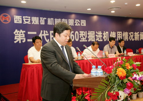 6月11日,西安煤礦機(jī)械有限公司在榆林舉行了第二代EBZ160型掘進(jìn)機(jī)產(chǎn)品使用情況新聞發(fā)布會(huì)。省煤炭工業(yè)局局長(zhǎng)王雙明,省煤礦安全監(jiān)察局局長(zhǎng)常天明,陜西煤業(yè)化工集團(tuán)副總經(jīng)理朱周岐,西安重工裝備制造集團(tuán)有限公司董事長(zhǎng)王增強(qiáng),中能煤田董事長(zhǎng)黃彬生及陜北礦業(yè)等40多家大型煤炭企業(yè)的領(lǐng)導(dǎo)和煤礦負(fù)責(zé)人共計(jì)120余人參加了會(huì)議。