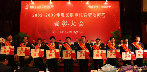“五一”國(guó)際勞動(dòng)節(jié)前夕,陜煤化集團(tuán)2008—2009年度文明單位和勞動(dòng)模范表彰大會(huì)4月29日上午在西安世紀(jì)金源大酒店隆重召開(kāi),大會(huì)對(duì)兩年來(lái)涌現(xiàn)出的31個(gè)文明單位和29名勞動(dòng)模范進(jìn)行了表彰,并動(dòng)員集團(tuán)公司各級(jí)組織和全體員工學(xué)習(xí)先進(jìn)事跡,弘揚(yáng)勞模精神,深化文明創(chuàng)建活動(dòng),為集團(tuán)公司實(shí)現(xiàn)又好又快發(fā)展而不懈奮斗。會(huì)議由集團(tuán)公司總經(jīng)理高仰才主持。