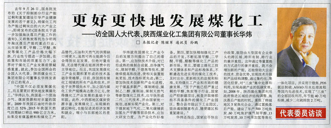 ——訪(fǎng)全國(guó)人大代表、陜西煤業(yè)化工集團(tuán)有限公司董事長(zhǎng)華煒