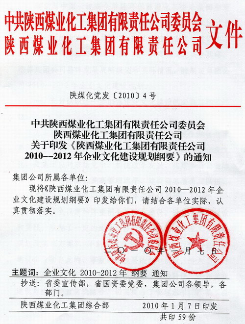 ——陜煤化集團黨政聯(lián)合印發(fā)《2010-2012年企業(yè)文化建設(shè)規(guī)劃綱要》