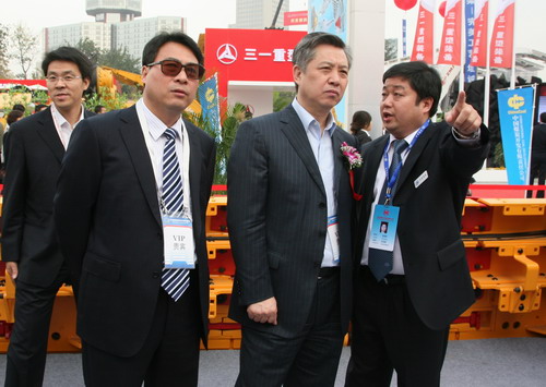 陜西煤業(yè)化工集團公司董事長、黨委書記華煒參觀西安煤礦機械有限公司展區(qū)。