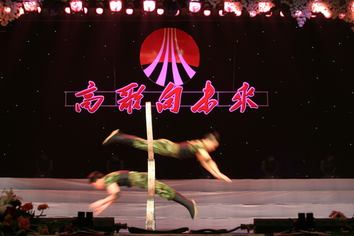 一開(kāi)場(chǎng),銅川礦務(wù)局軍樂(lè)奏出了祖國(guó)大地山川壯麗,人民迎接社會(huì)主義到來(lái)的無(wú)比興奮的心情,贊美祖國(guó)工農(nóng)業(yè)生產(chǎn)蒸蒸日上的情景及廣大人民充滿自豪感和對(duì)祖國(guó)繁榮昌盛的期盼與歌頌,這支剛剛組建才26天的職工軍樂(lè)隊(duì)所有隊(duì)員拼出所有的力量,把自己的激情都化作在對(duì)祖國(guó)的滿腔熱愛(ài)和無(wú)限崇敬中,如此的壯觀場(chǎng)面令人激動(dòng)不已,眼前頓時(shí)浮現(xiàn)洶涌奔流的黃河之水天上來(lái)的畫(huà)面。無(wú)論是彬長(zhǎng)公司的雜技《鉆圈》、或者陜北礦業(yè)公司的舞蹈《金嗩吶》、還是韓城礦務(wù)局歌伴舞《礦工萬(wàn)歲》、以及渭河煤化工集團(tuán)公司音詩(shī)舞《跨越》,整臺(tái)晚會(huì)高潮迭起,演員激情澎湃,觀眾歡呼雀躍。在氣勢(shì)磅礴的歌舞聲中,我們仿佛聽(tīng)到了共和國(guó)鏗鏘的腳步聲,在昭示著我們偉大祖國(guó)翻天覆地的巨大變化,仿佛看到陜西煤業(yè)化工集團(tuán)正邁著矯健的步伐以飽滿的精神狀態(tài)迎接祖國(guó)的生日,走向更加輝煌燦爛的明天的場(chǎng)面。