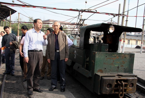 圖為韋國海專員深入到象山礦井工業(yè)廣場,詳細聽取韓城礦務(wù)局局長對生產(chǎn)系統(tǒng)、原煤運輸系統(tǒng)情況的介紹。
