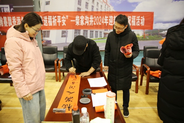 迎新春萬福到,喜氣洋洋過新年。伴隨著新春佳節(jié)的到來,該礦文體活動悄悄拉開了序幕,在“迎新春、送萬福、進(jìn)萬家”活動現(xiàn)場,來自機(jī)關(guān)部室和生產(chǎn)區(qū)隊(duì)的書法家們攜帶“文房四寶”,在紅艷艷的春聯(lián)上揮毫潑墨,洋溢瀟灑地寫下了各式各樣喜氣滿滿的“?!弊郑磉_(dá)著職工群眾對新一年美好生活的向往。