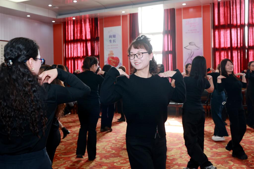 互動(dòng)實(shí)踐環(huán)節(jié)將現(xiàn)場(chǎng)氣氛推向了高潮。在陳老師和助教團(tuán)隊(duì)的悉心指導(dǎo)下,女職工們熱情高漲,積極投入練習(xí),隨老師的口令,在一招一式中糾正不良體態(tài),在一顰一笑間體會(huì)禮儀風(fēng)范。老師耐心地為每一位學(xué)員調(diào)整動(dòng)作,細(xì)心糾正,確保大家都能掌握要領(lǐng)、學(xué)有所獲?,F(xiàn)場(chǎng)歡笑聲不斷,大家在輕松愉悅的氛圍中放松了身心,提升了氣質(zhì),也增強(qiáng)了自信。