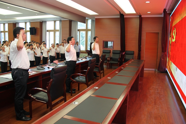 會上,納新黨員進(jìn)行入黨宣誓,機(jī)關(guān)黨員干部在黨委副書記、紀(jì)委書記徐捷的帶領(lǐng)下重溫入黨誓詞,堅定理想信念。
