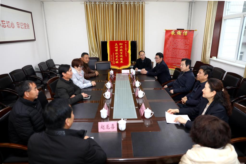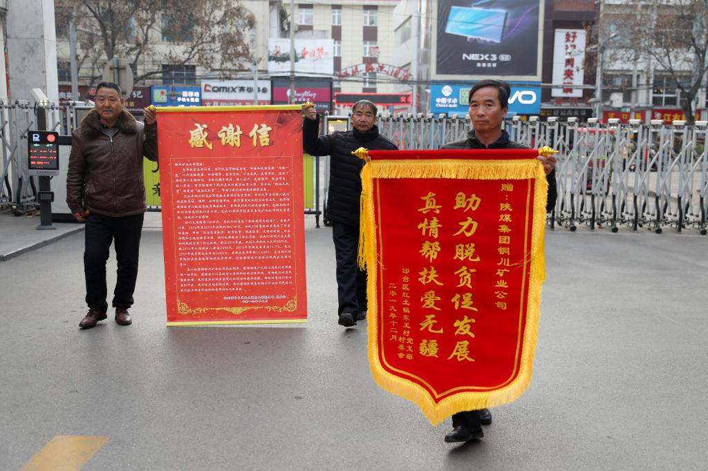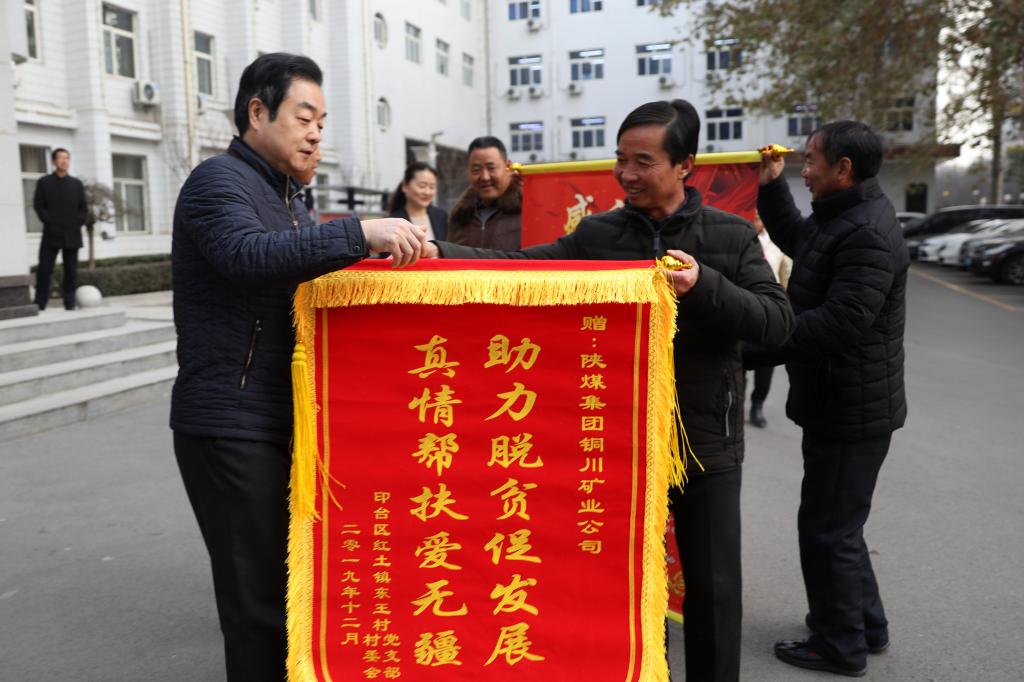 12月18日一大早,公司扶貧對象銅川市印臺區(qū)紅土鎮(zhèn)東王村干部和村民代表來到公司辦公樓前,向公司黨政送來了錦旗和感謝信,以此表達對公司真情幫扶東王村脫貧攻堅的致敬與謝意。公司黨委書記、執(zhí)行董事劉水利,黨委副書記、工會主席劉啟科接過錦旗和感謝信。隨后,公司領(lǐng)導和公司機關(guān)有關(guān)部門、相關(guān)單位負責同志及公司駐村幫扶干部,與紅土鎮(zhèn)、東王村干部和村民代表在公司機關(guān)二樓會議室進行了座談交流。